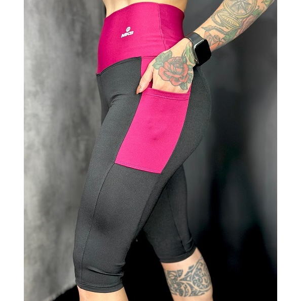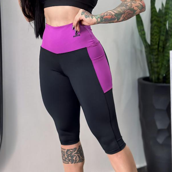 Calça Legging Corsário Capri Fitness Com Bolso e Cós Alto