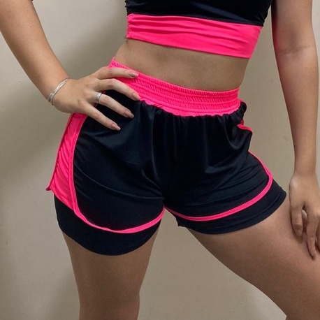 Short Duplo Fitness Feminino Para Academia Corrida e Esportes - MKS