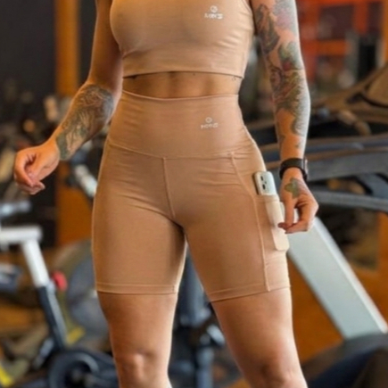 Short Academia Fitness Feminino Com Bolso e Cintura Alta