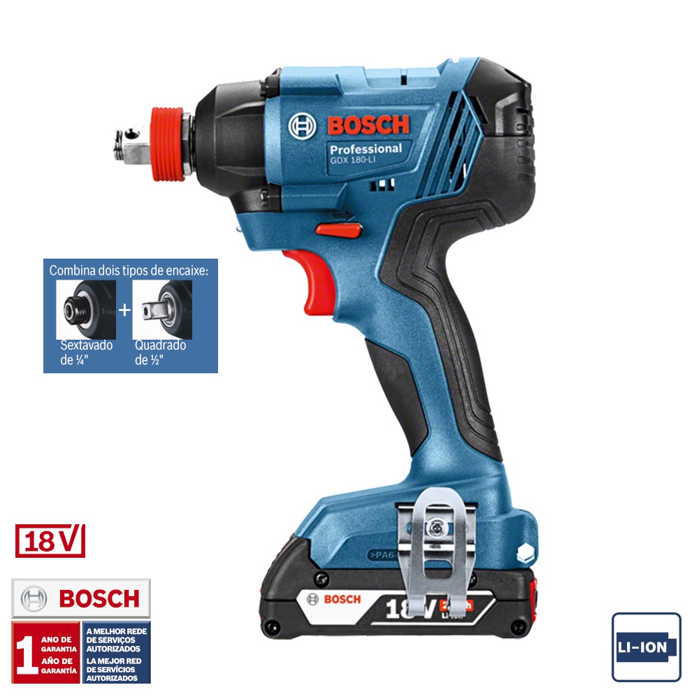Chave de Impacto GDX 180-LI Bosch 1/4" e 1/2" de 18V e 180Nm