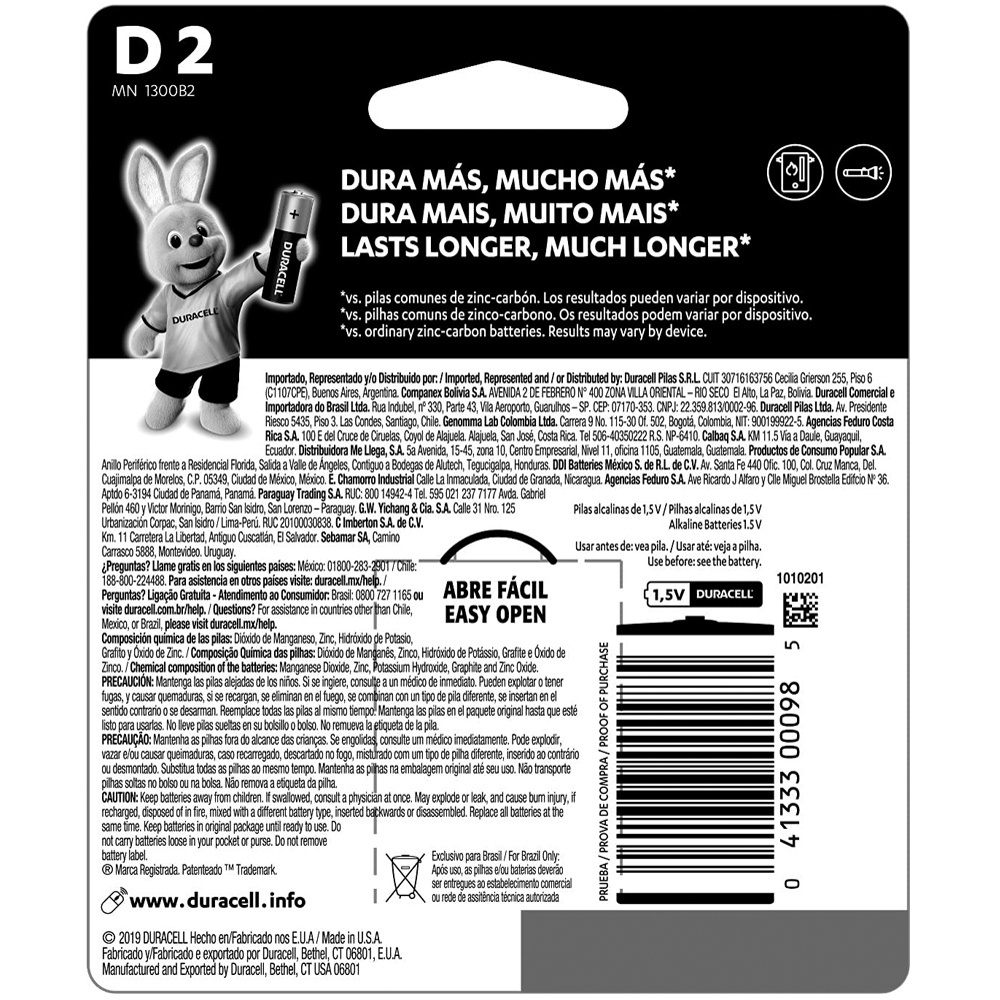 Pilha Grande D Alcalina Duracell com 2 Unidades