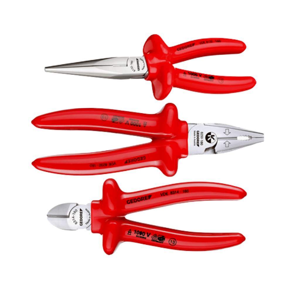 Jogo De 3 Alicates Isolados Universal, de Corte e de Bico reto Gedore VDE S 8003