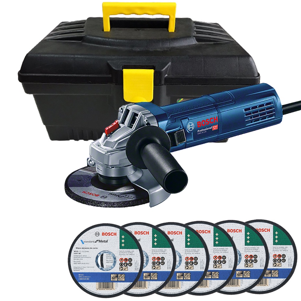 Esmerilhadeira GWS 9-125 Bosch + 6 Discos de Corte e Maleta Utility 17"