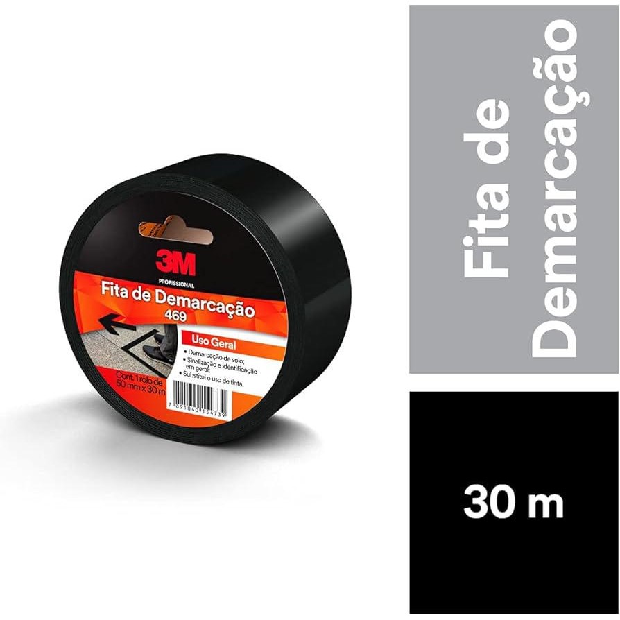 Fita de Demarcação 30 Metros x 50mm Preta 3M Uso Geral Sinalização de Solo