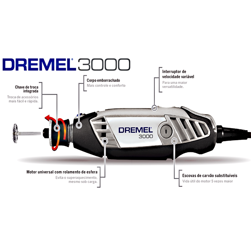Kit Retífica Dremel 3000 com 10 Acessórios + Bolsa Bosch