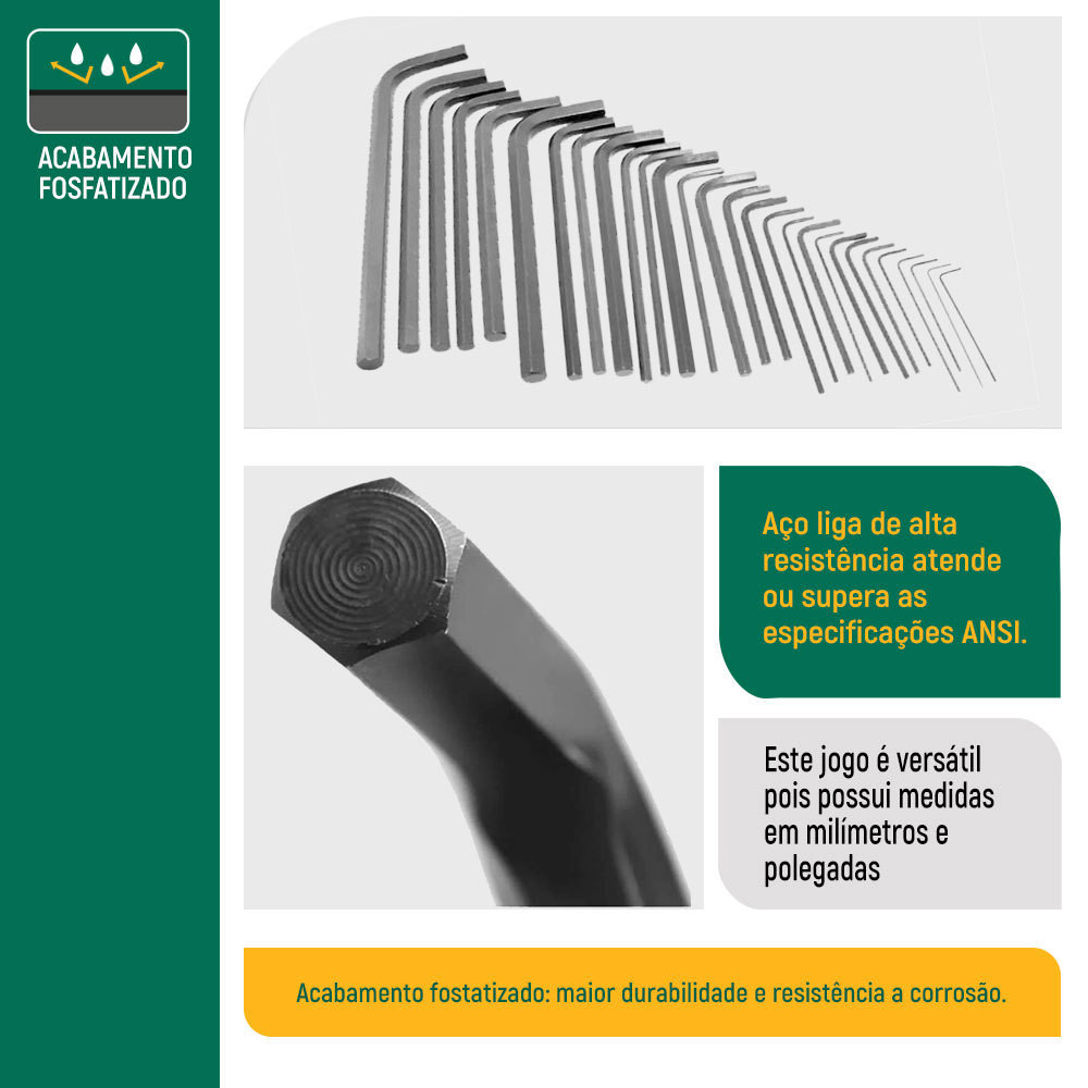 Jogo de Chave Allen Sata 0,7 a 10mm e Polegadas com 25 Peças Hexagonal ST09120SJ
