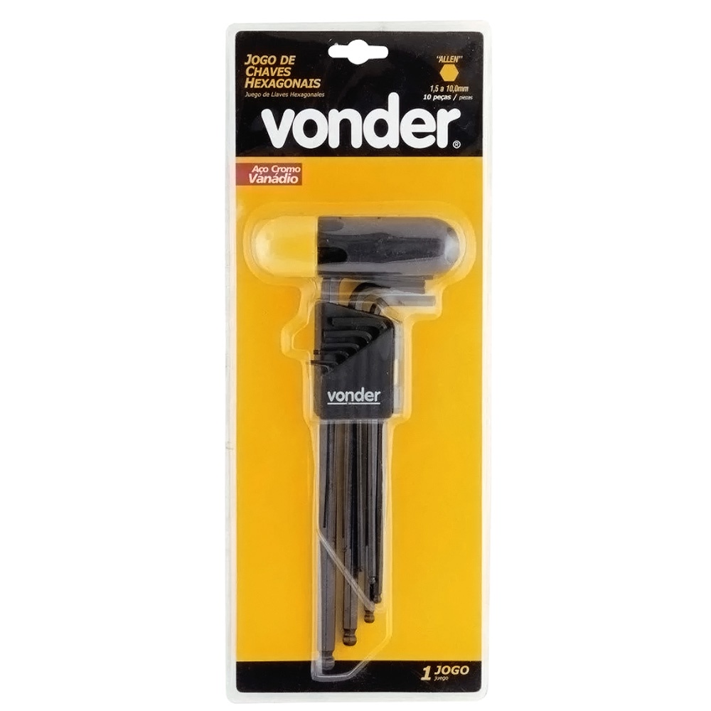 Jogo de Chaves Hexagonais Allen 1,5 a 10 mm Vonder com 10 Peças