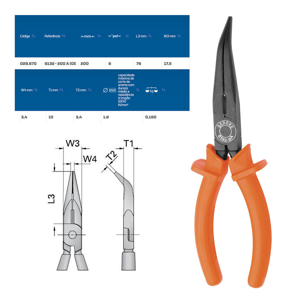 Alicate Bico Meia Cana 8" Longo Curvo Gedore Isolado 8132 - 200 A IOX