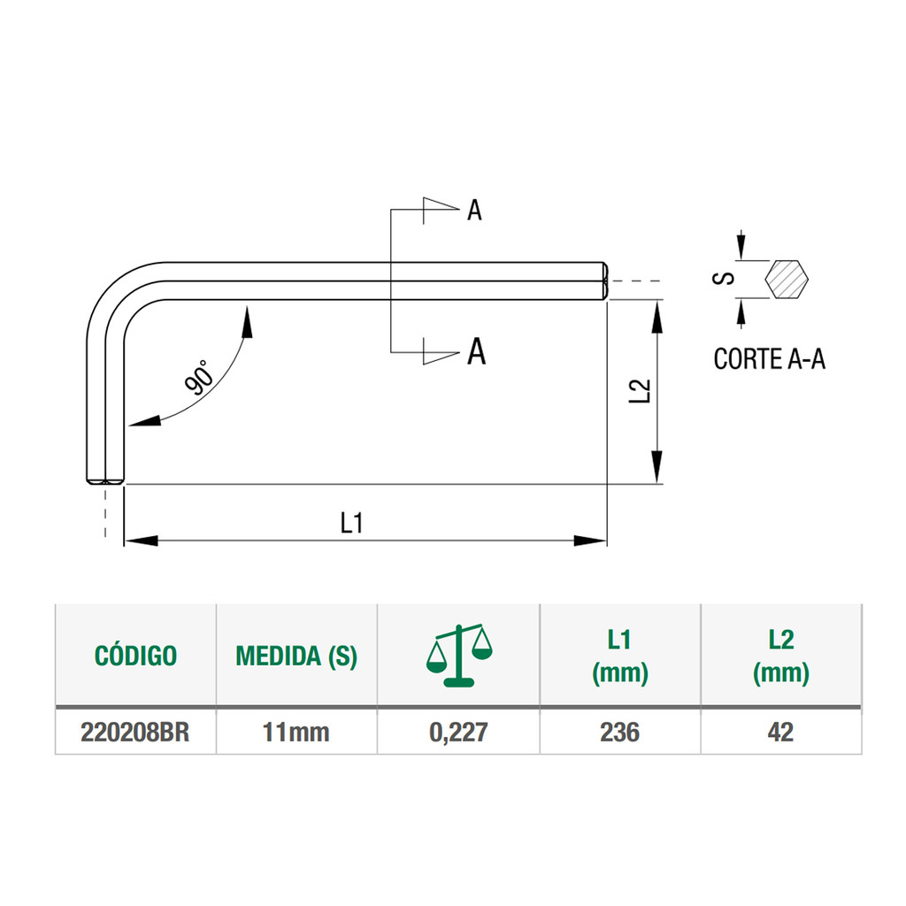 Chave Allen 11mm Longa Belzer 220208BR Hexagonal