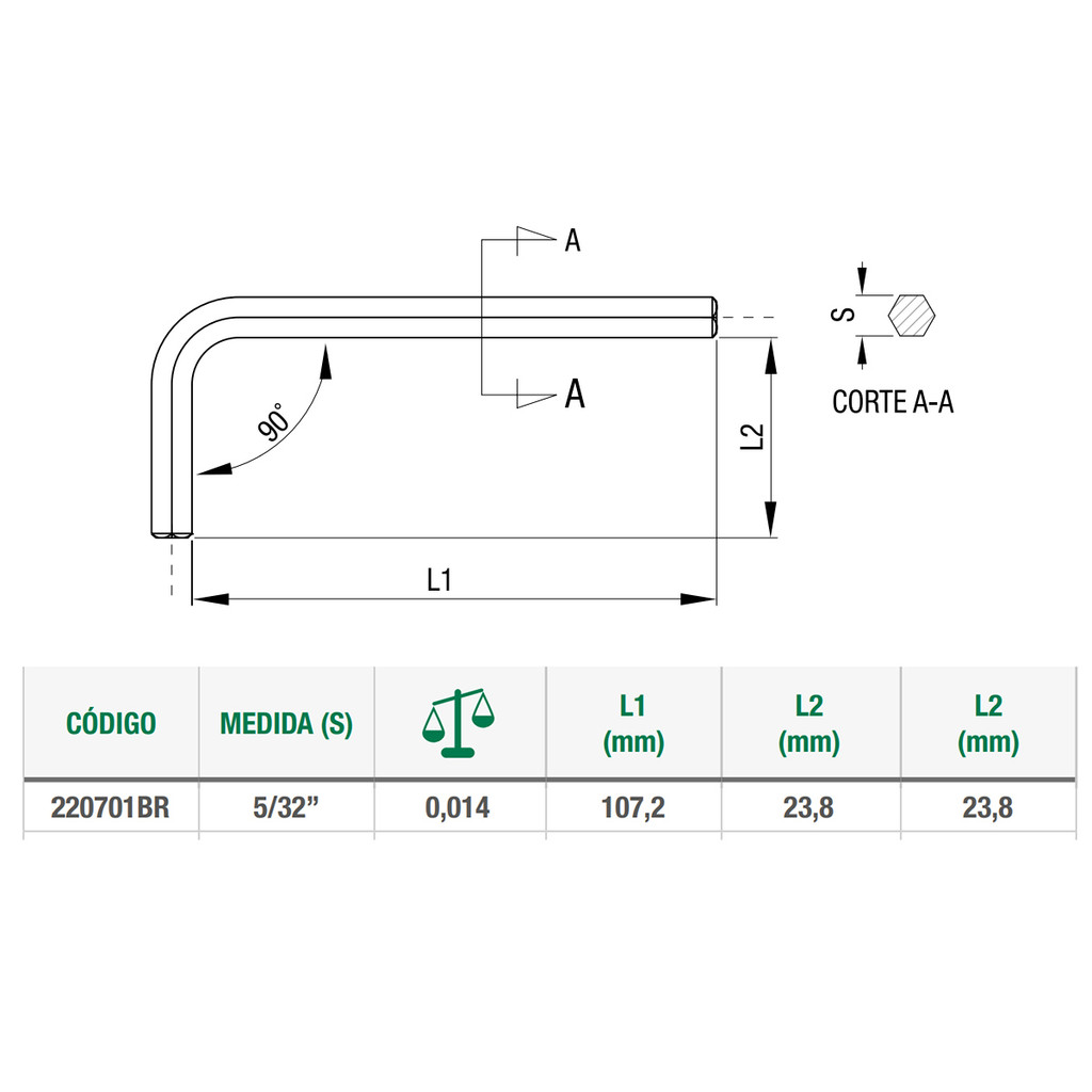Chave Allen 5/32" Longa Belzer 220701BR Hexagonal