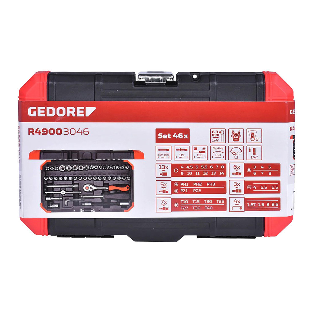 Kit Soquete Sextavado 1/4" de 4 a 14mm com 46 Peças Gedore Red R49003046