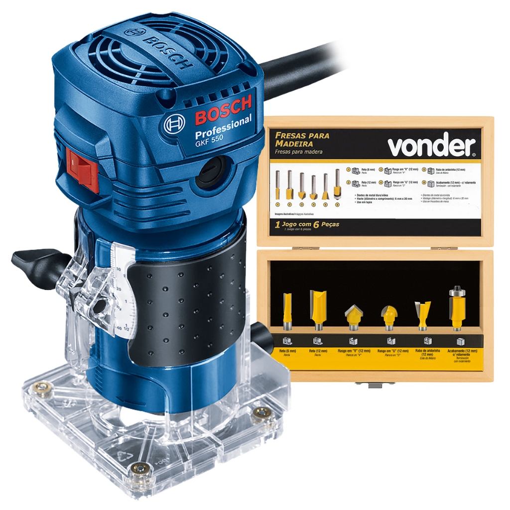 Tupia GKF 550 Bosch + Kit de Fresa Vonder 6 Peças