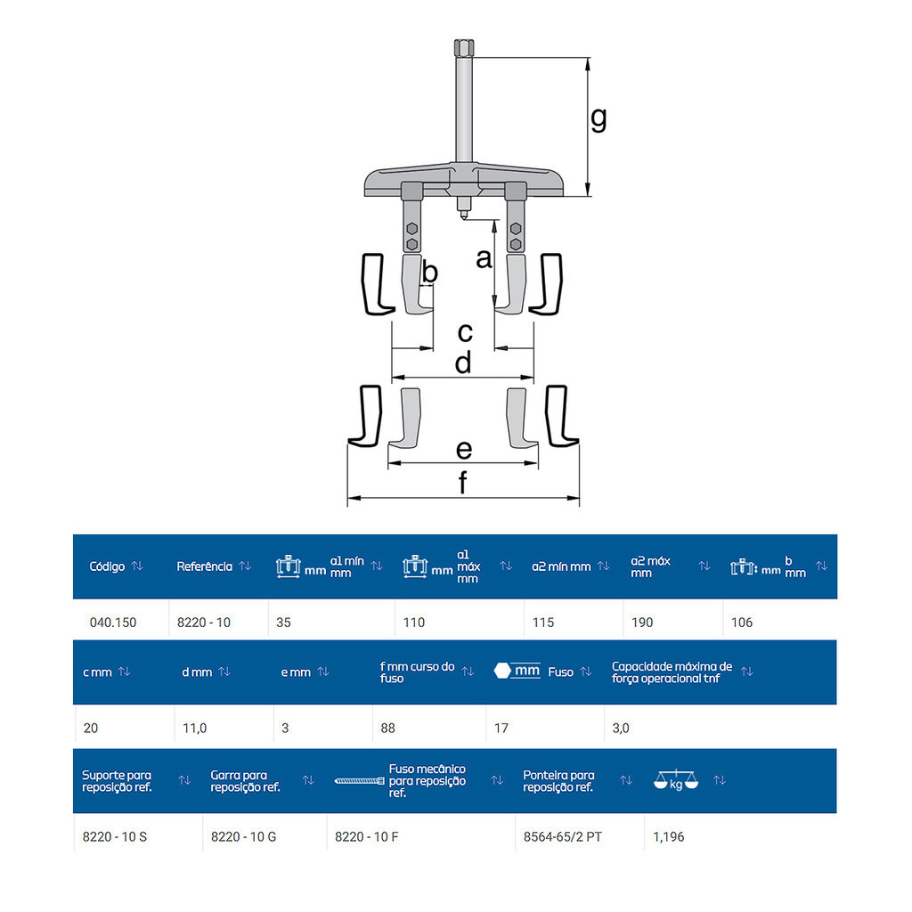 Saca Polia 2 Garras Deslizantes 3 ton. Gedore 8220-10