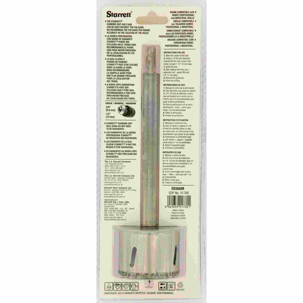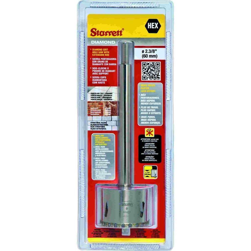 Serra Copo Diamantada 60mm Starrett Alvenaria Cerâmica DE060M