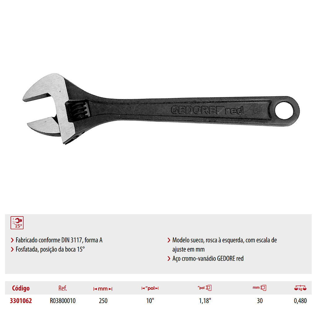 Chave Ajustável 10" - 250mm Gedore Red R03800010