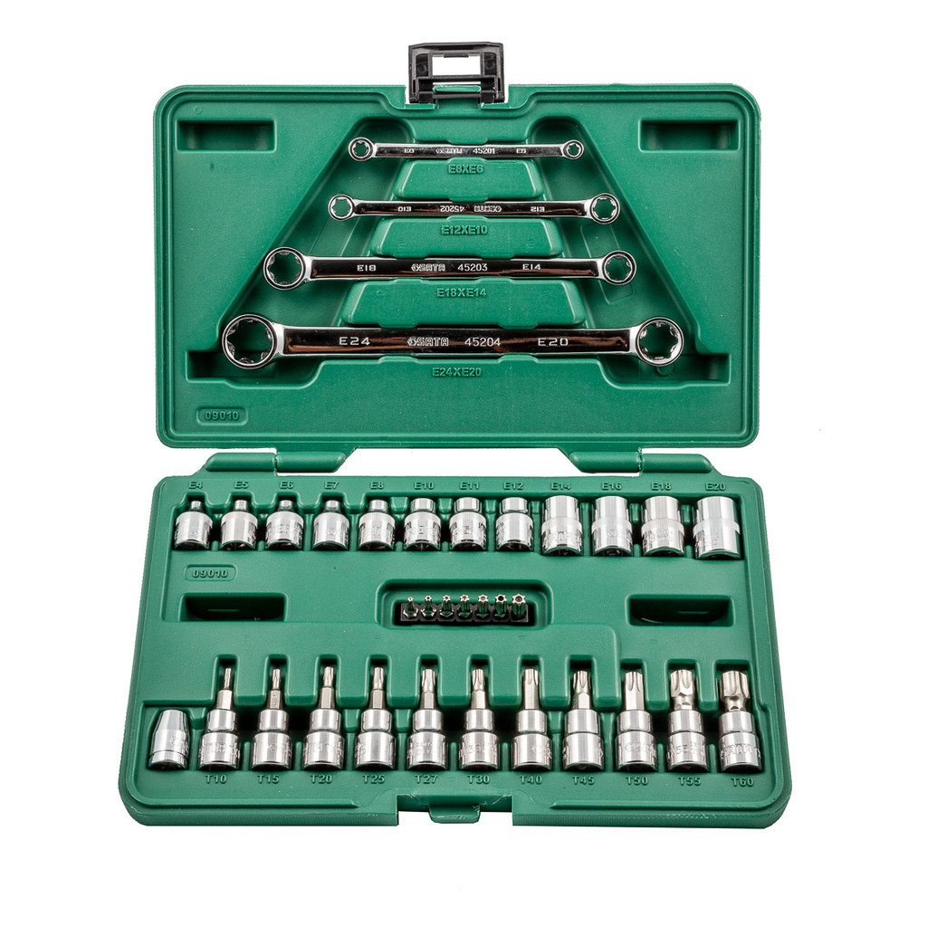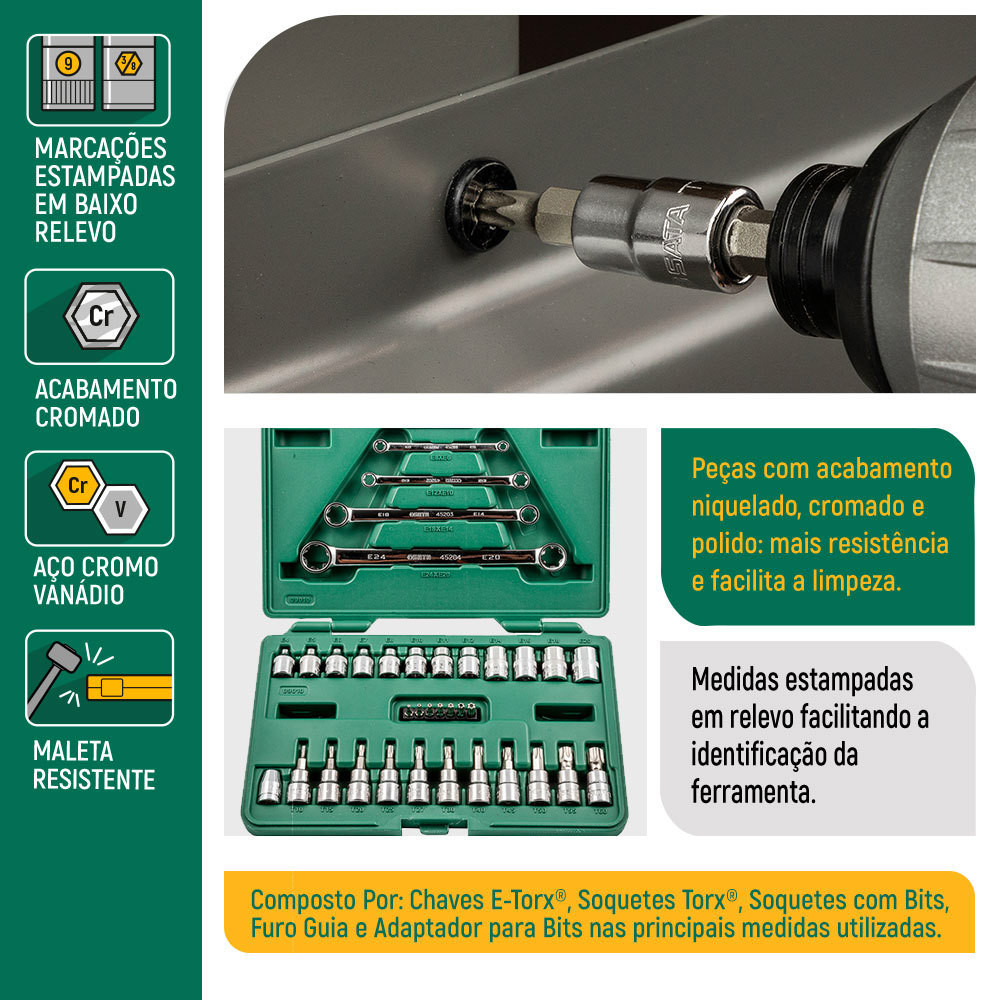 Jogo de Soquete e Chave Torx 3/8 e 1/4" Sata com 35 Peças ST09010SJ