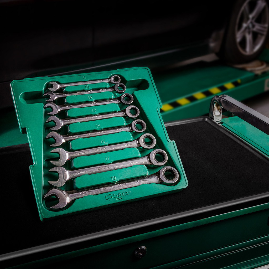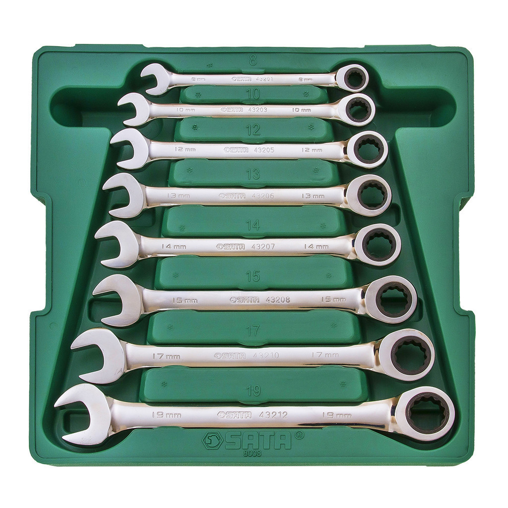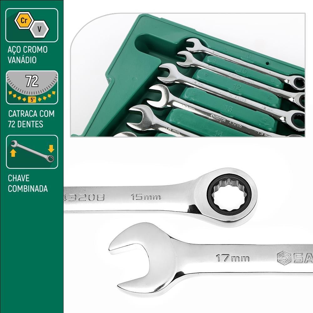 Jogo Chave Combinada Catraca 8 a 19mm Sata com 8 Peças Lado Estrela e Boca ST08008SJ