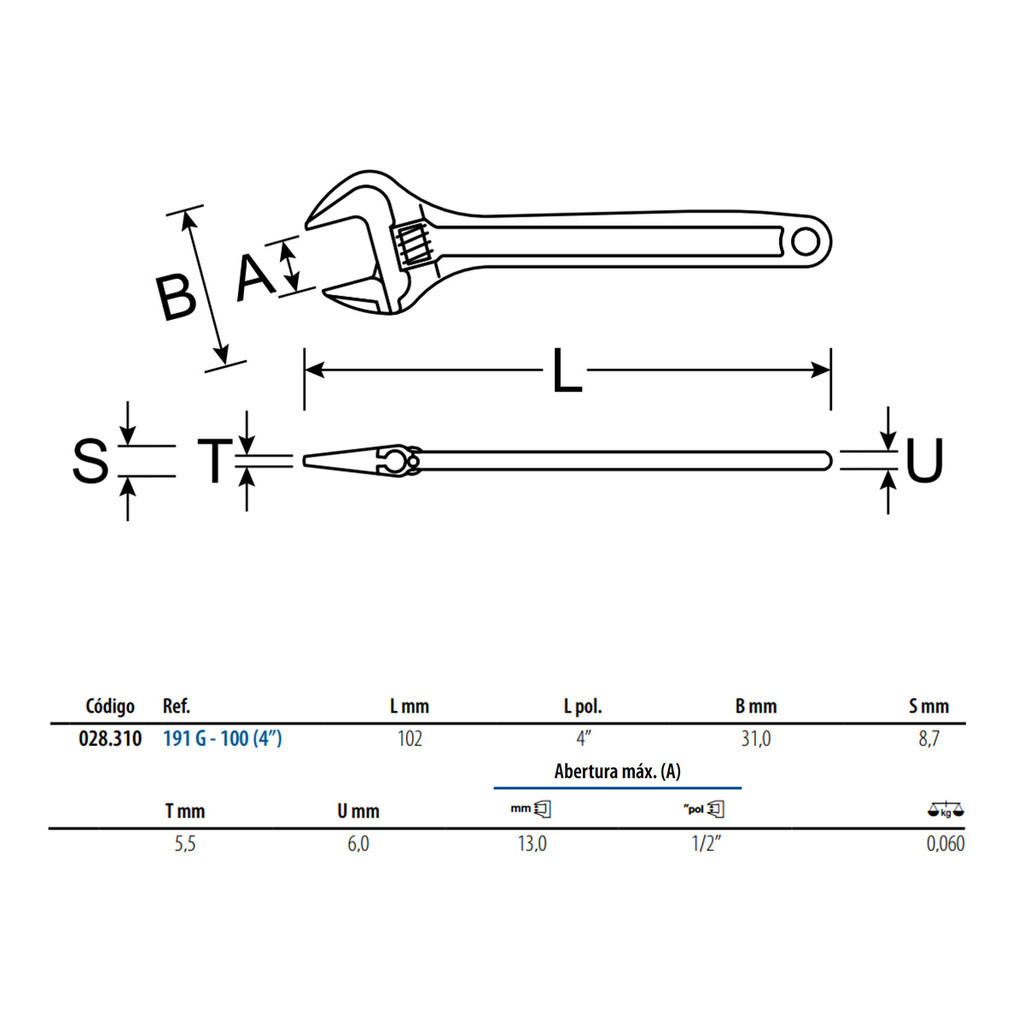 Chave Ajustável 4" (100mm) Gedore 191G-100