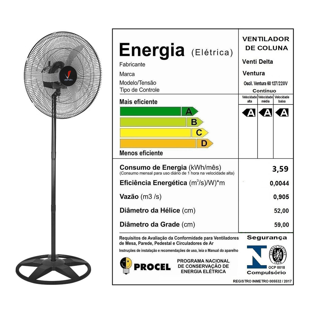 Ventilador de Coluna Bivolt 60cm Ventura Oscilante