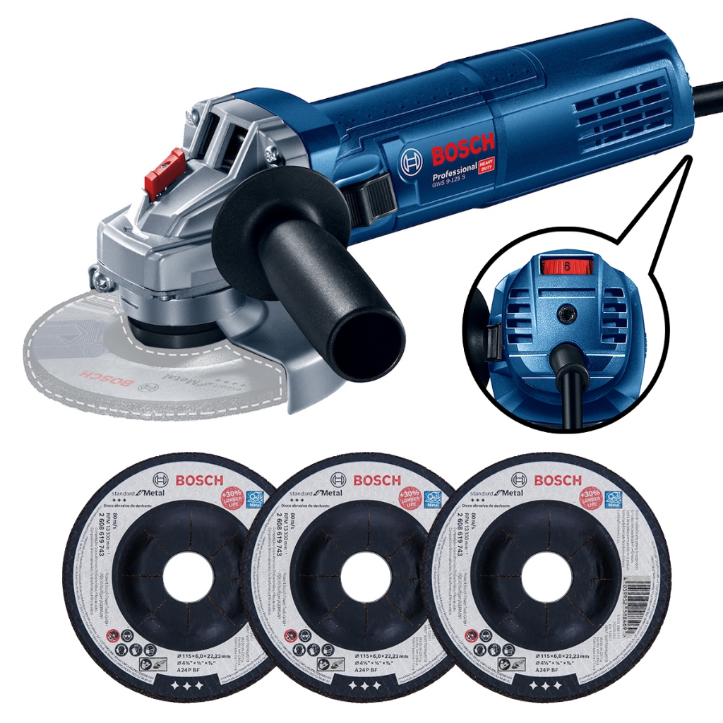 Esmerilhadeira GWS 9-125 S Controle de Velocidade com Discos