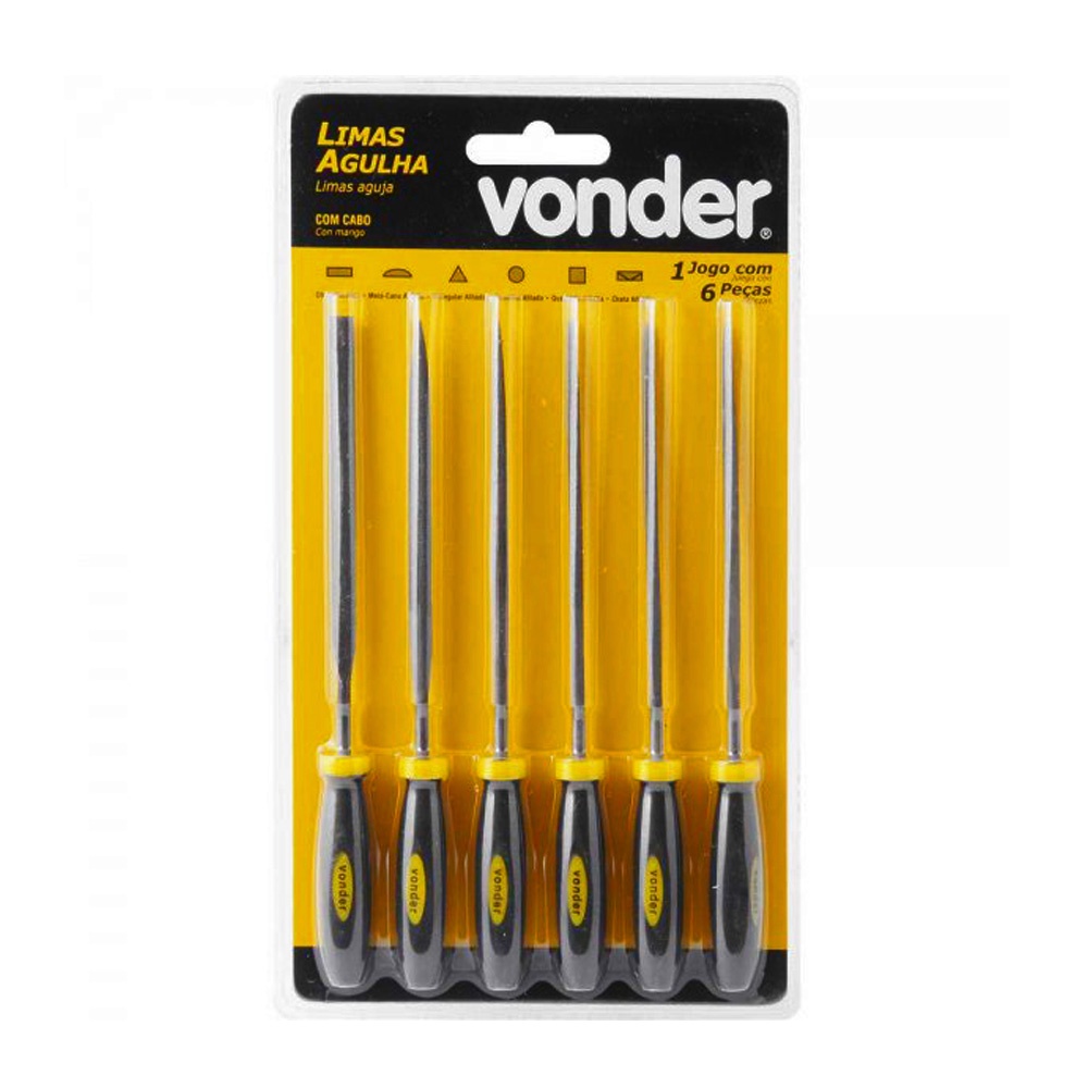 Jogo de Limas Agulha com Cabo Vonder com 6 Peças Chata Redonda Quadrada Meia-Cana Triangular