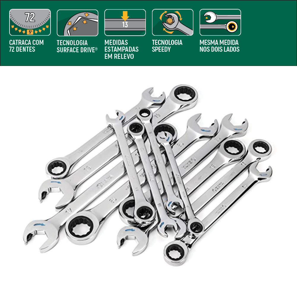 Jogo Chave Combinada Catraca 8 a 19mm Sata Speedy com 12 Peças