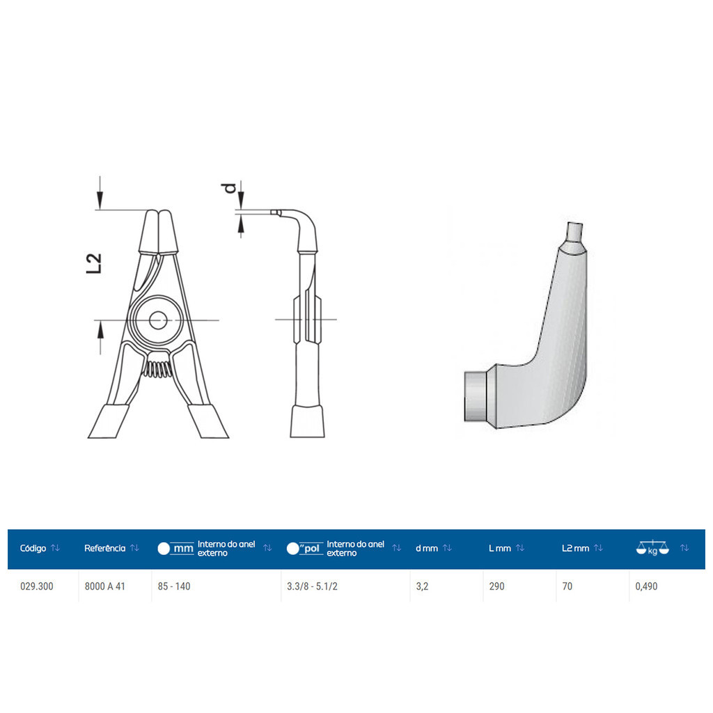 Alicate para Anéis 12" Externos Curvo 90° 85-140mm Gedore 8000A41