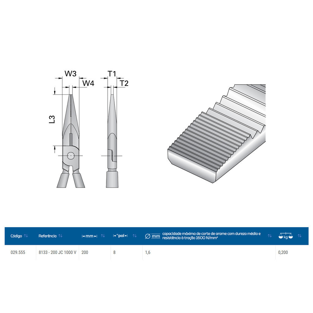 Alicate Multifuncional 8" 1000V Gedore 8133-200 JC Desencapador Bico Semi Redondo