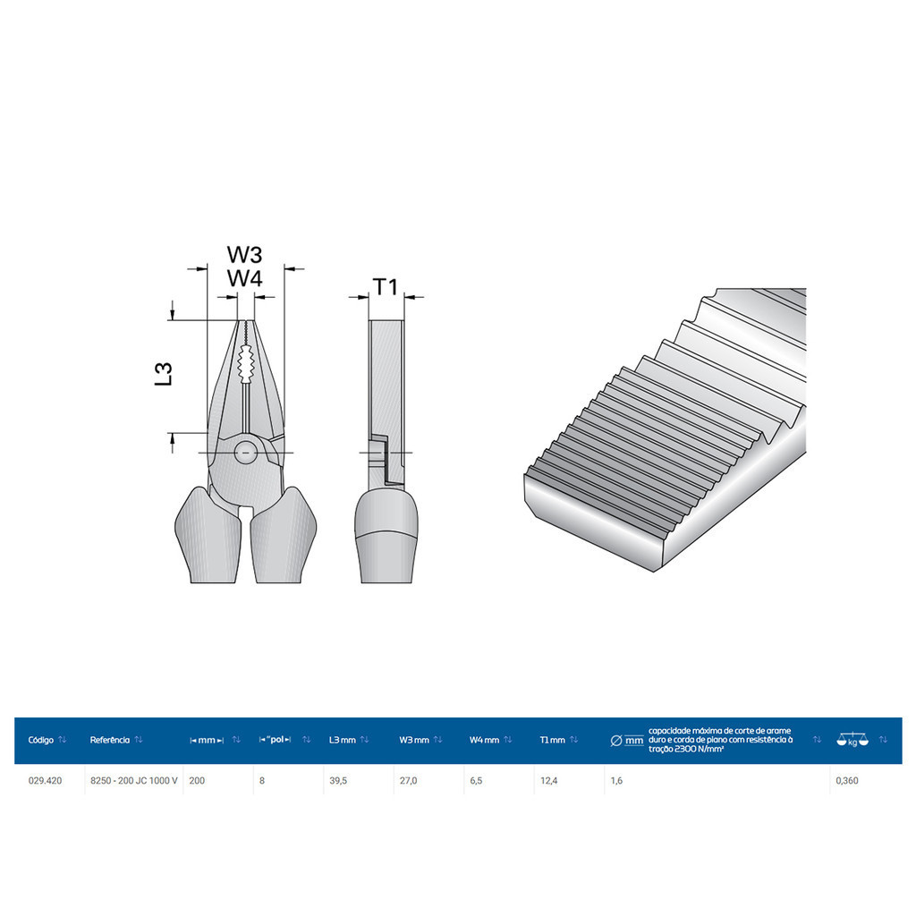 Alicate Universal 8" Super Kraft 1000V Gedore 8250-200JC