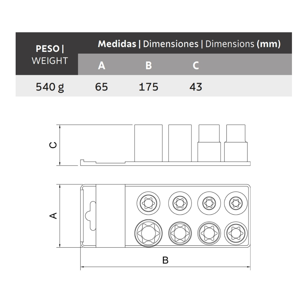Jogo Soquetes Torx E10-E24 Tramontina PRO Fêmea 1/2" 8pç 44847/508