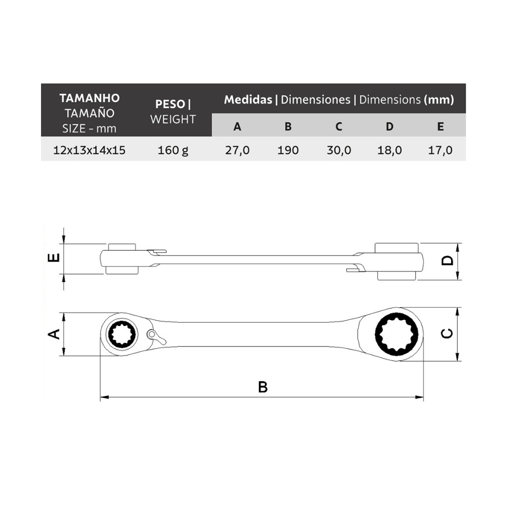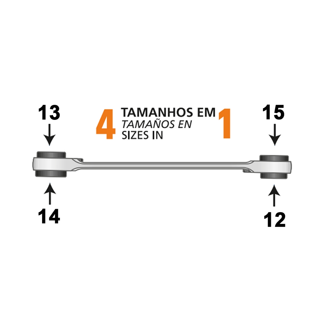 Chave de Catraca 12 a 15mm Tramontina PRO 4 em 1 Multidrive 44637/103