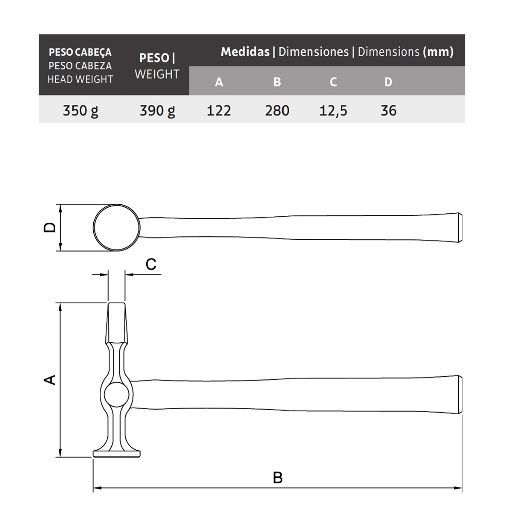 Martelo Chapeador 350g Tramontina PRO Pena Reta 40474/000