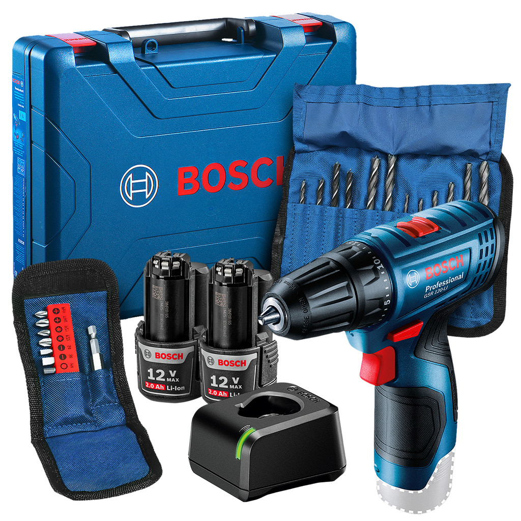 Parafusadeira GSR 120-LI Bosch Furadeira 12V com Brocas e Bits 2 Baterias Carregador e Maleta