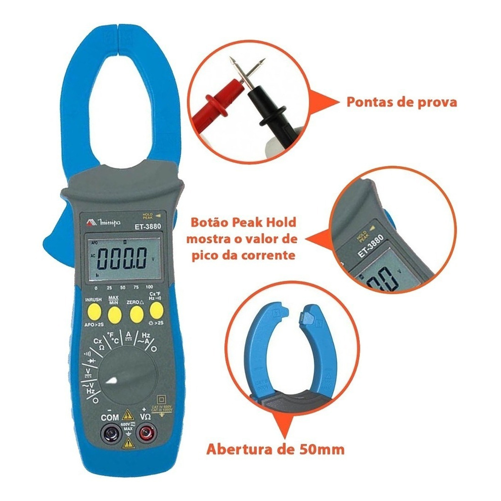 Alicate Amperímetro Digital ET-3880 Minipa