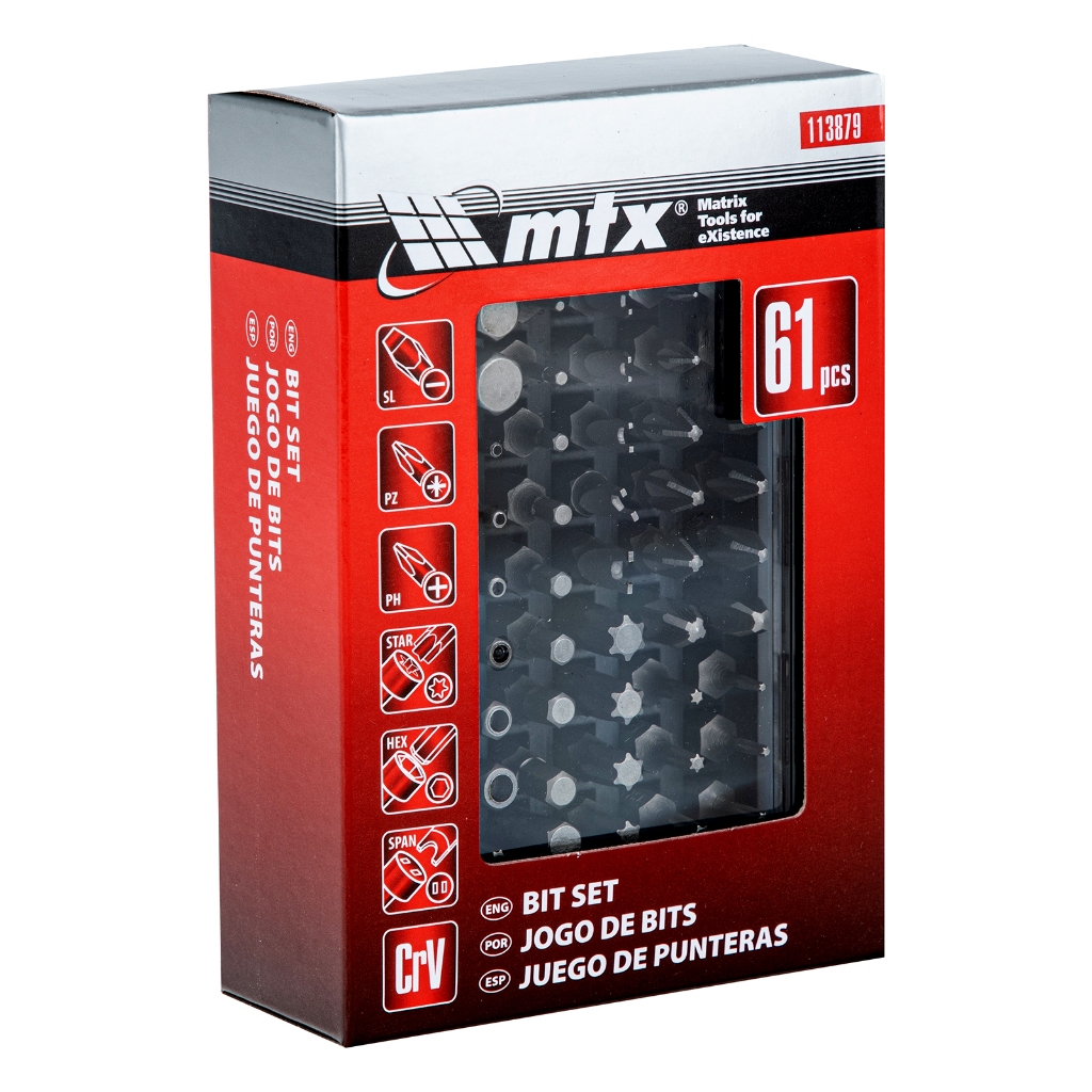 Jogo de Bits 25mm MTX Fenda Philips Pozidriv Torx Spanner Allen 61pç