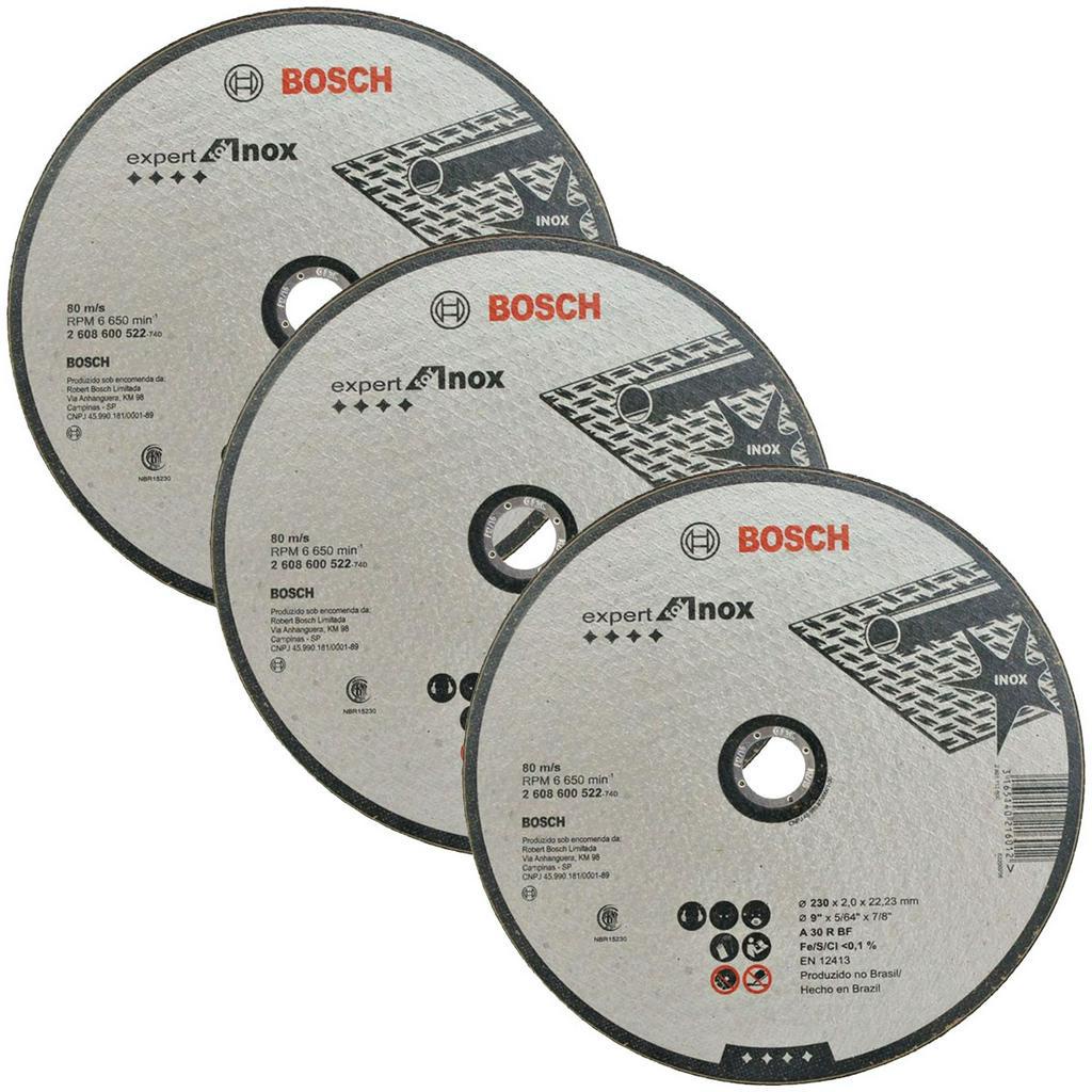 Discos de Corte 230mm p/ Inox Bosch Kit com 3 Expert for Inox 9"