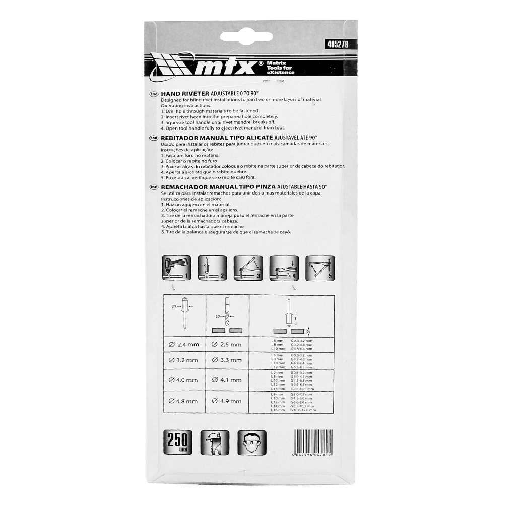 Rebitador Manual Ajustável 2,4 a 4,8mm MTX Tipo Alicate 10"