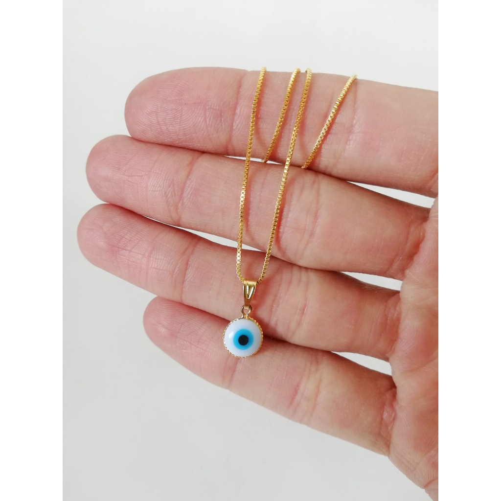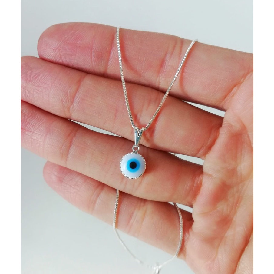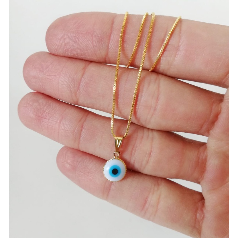 Colar Olho Grego Feminino Folheado a Prata 925 Gargantilha Correntinha Feminina