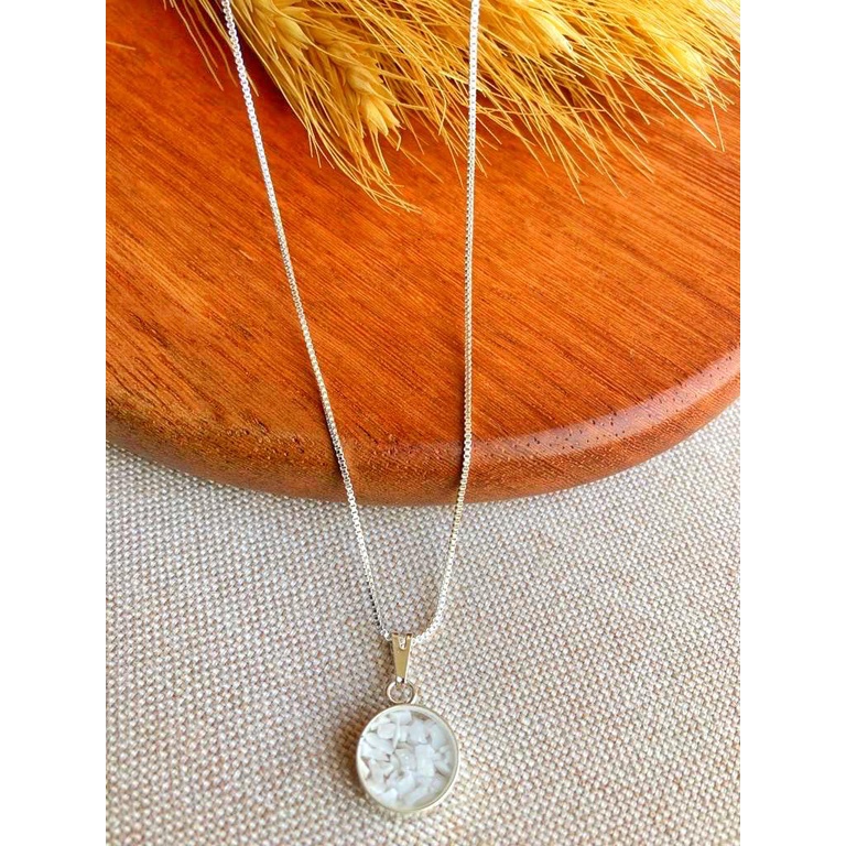 Colar Sal Grosso em Capsula a Vácuo Proteção Feminino Folheado a Prata Correntinha Veneziana Amuleto