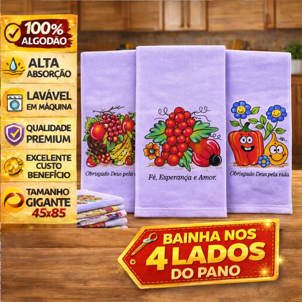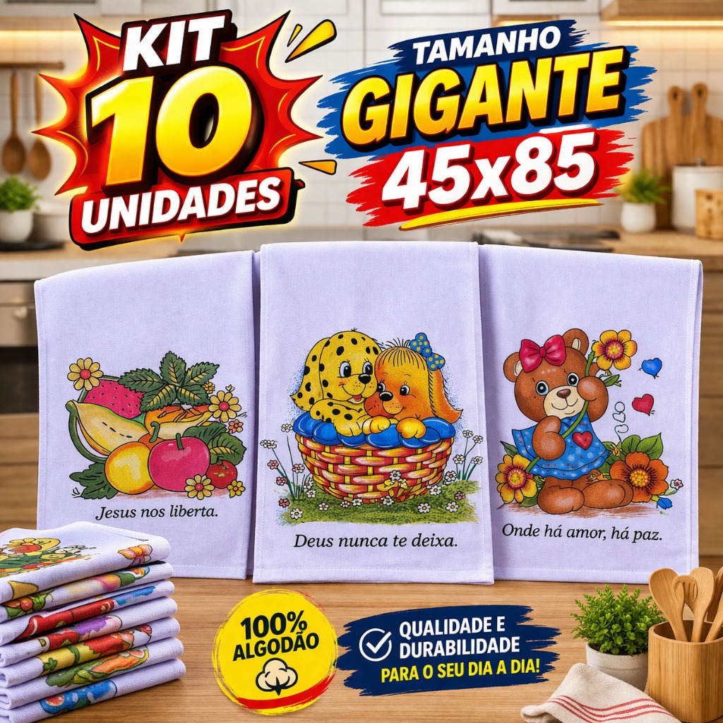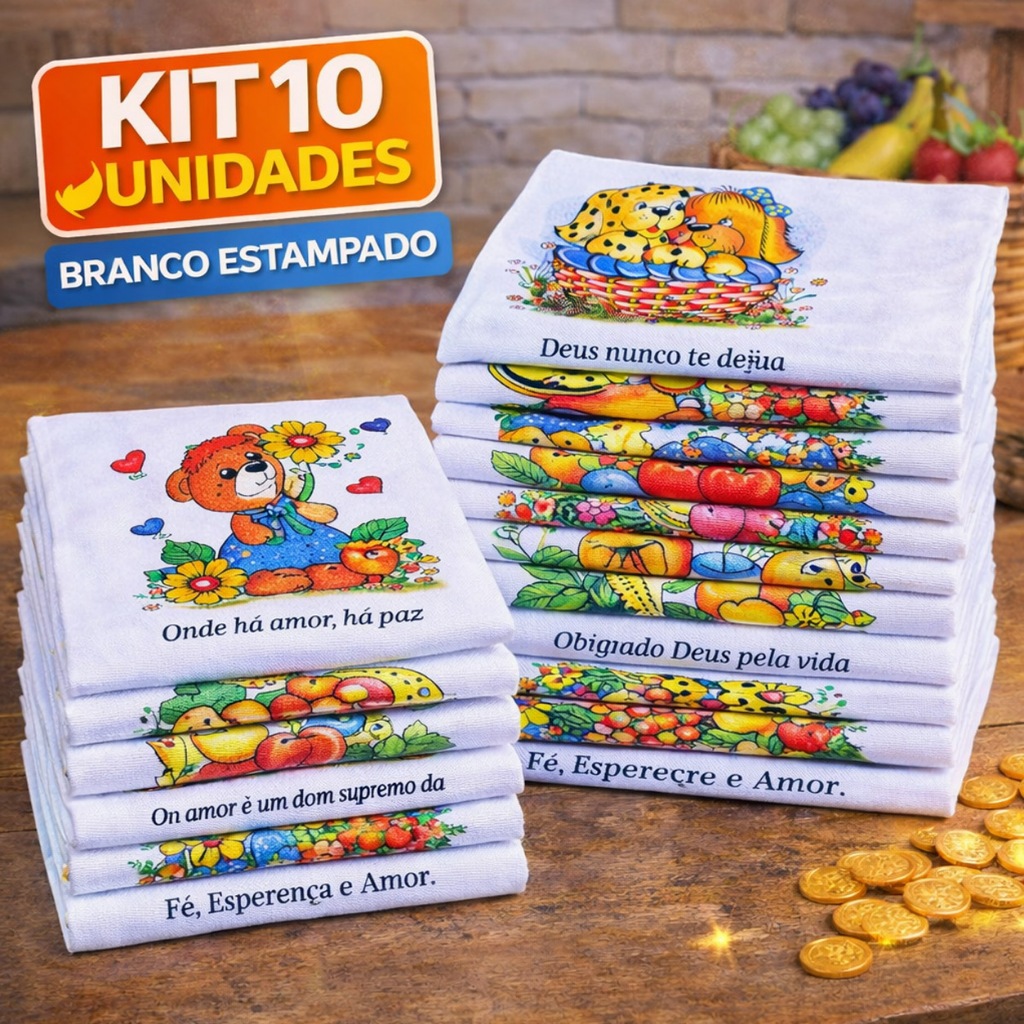 Kit 10 Pano De Prato Copa Grande Atacado 45x85 De Cozinha Estampado Algodão