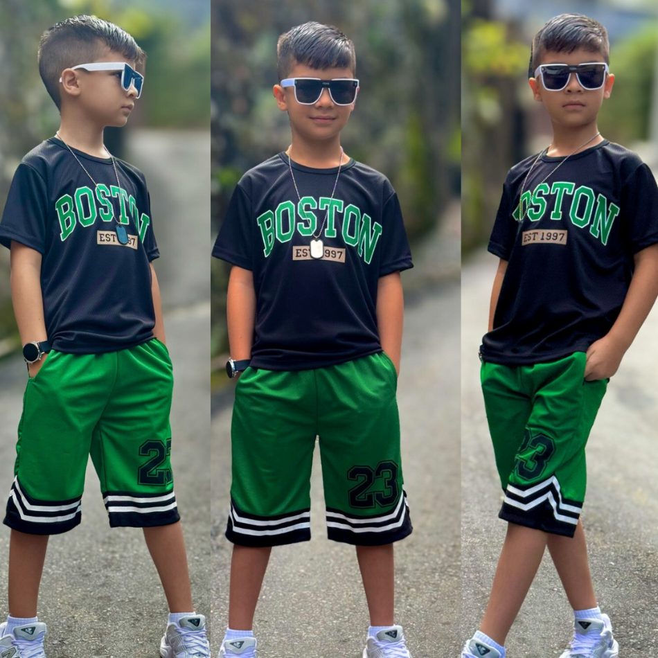 Conjunto Infantil Juvenil Masculino Kit Camiseta e Bermuda Dry Fit