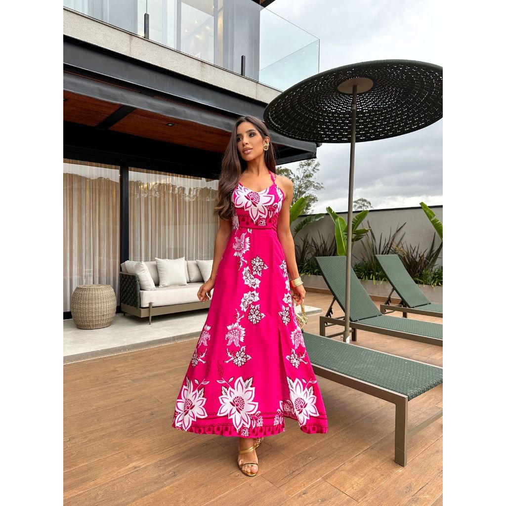 Vestido Longo Feminino Estampa Floral Alça Dupla COD:216-Est