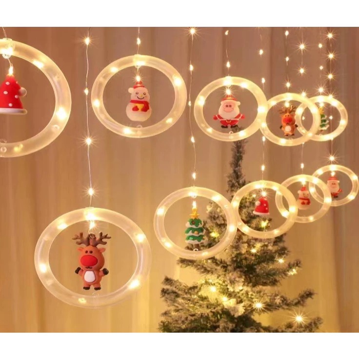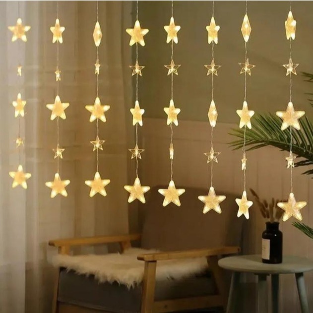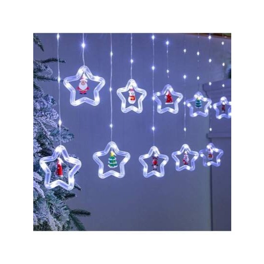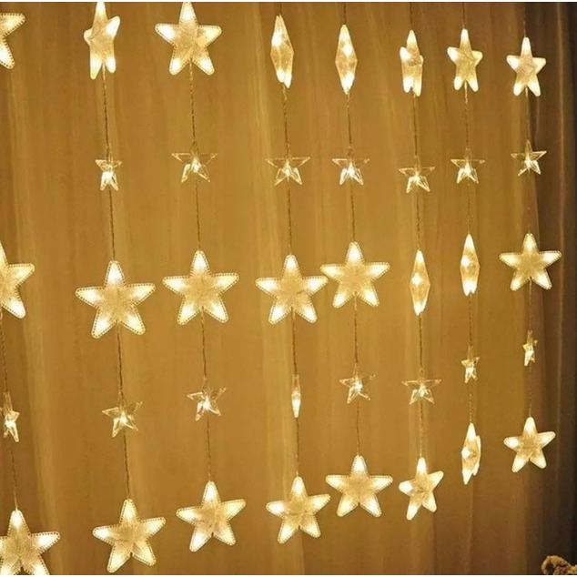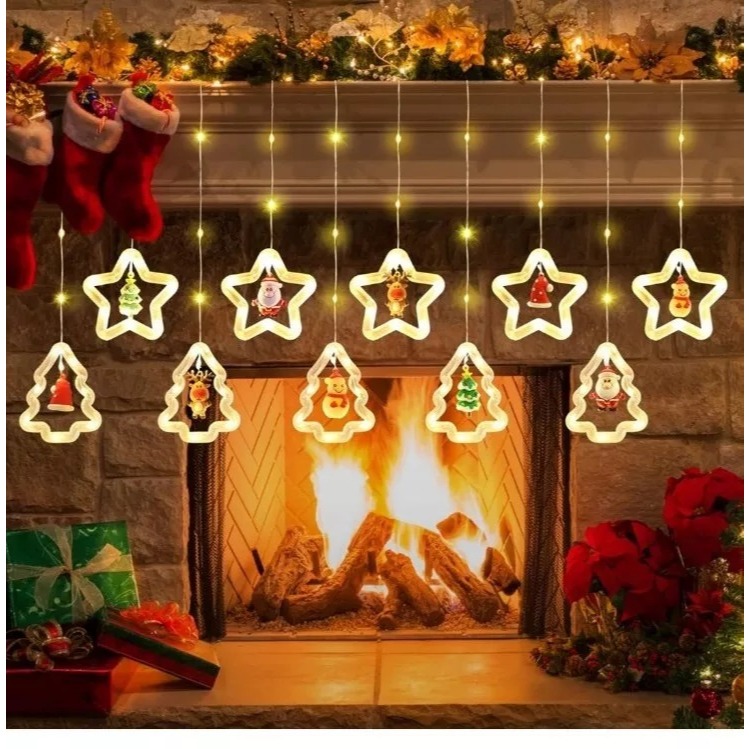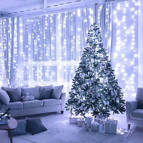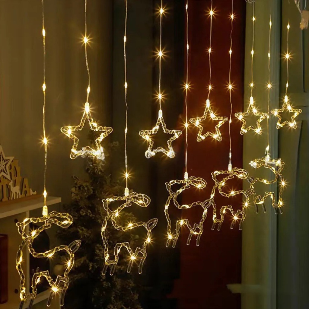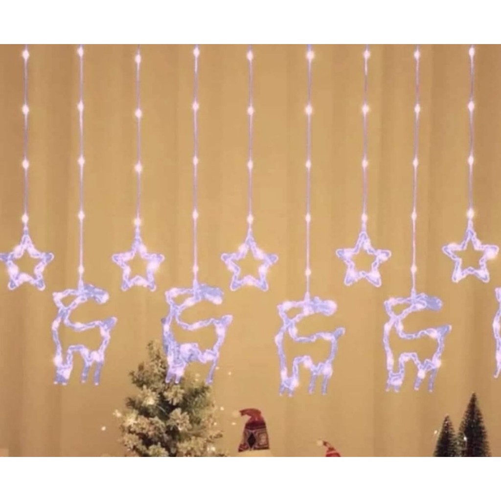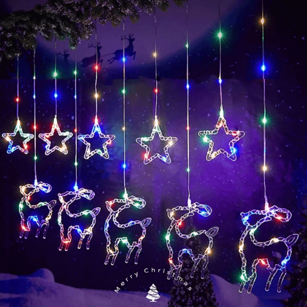 Cortina Cascata 100 LEDS Estrelas Renas Natalino Decorativo 3 Metros 8 Funções Bivolt