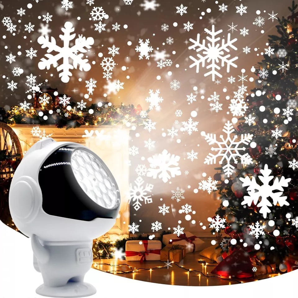 Projetor Luz de Natal Rotativo Decorativo Sala Quarto Varanda Flocos de Neve ou Tema Natalino