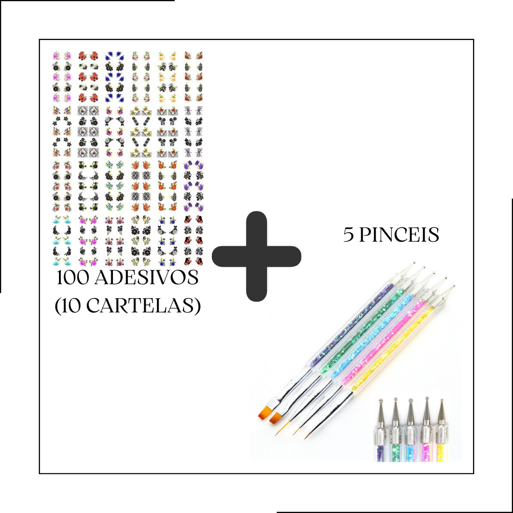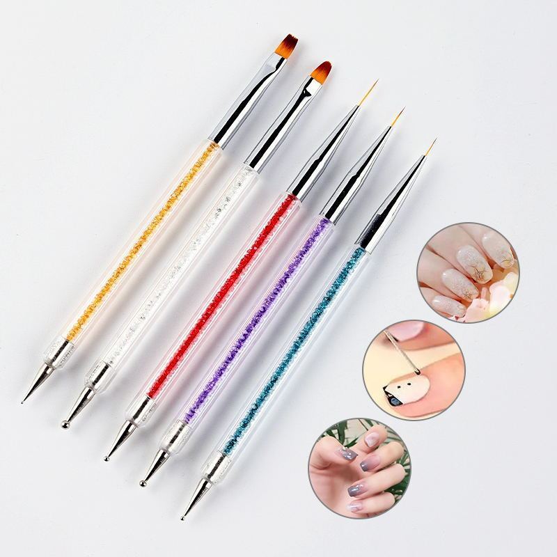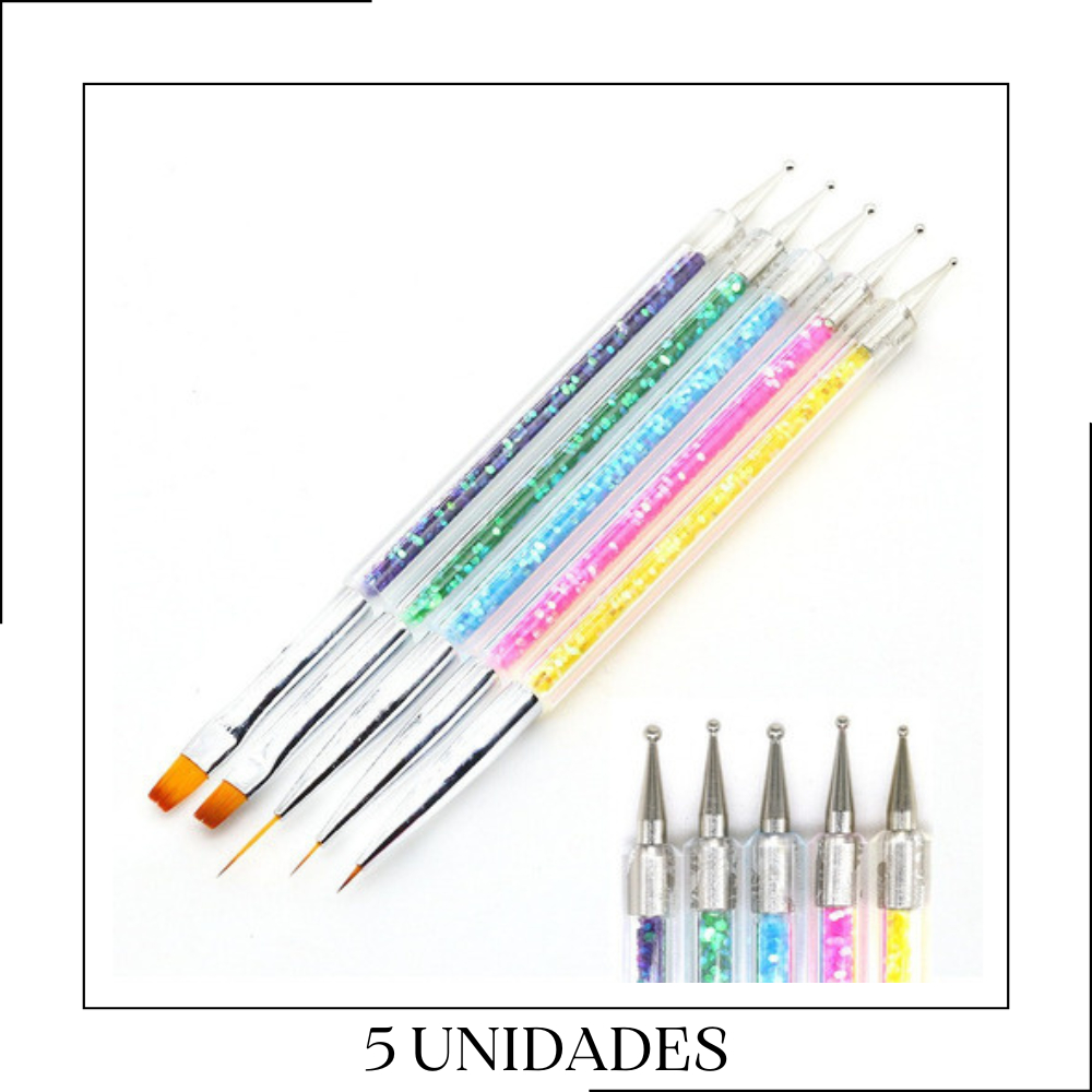 Kit 5 Pincéis e Boleadores 2 Em 1 Ponta Dupla Decoração de Unhas Nail Art Pontilhismo Manicure Pedicure