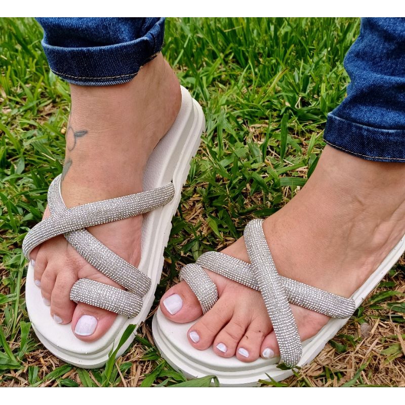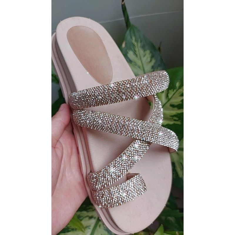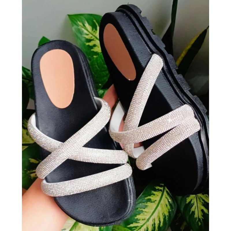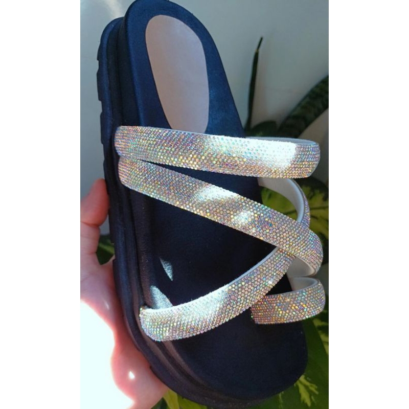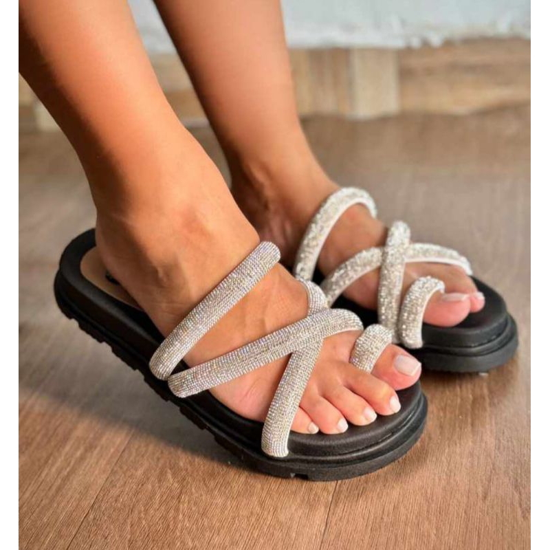 Sandália Papete Birken de Strass Verdadeiro