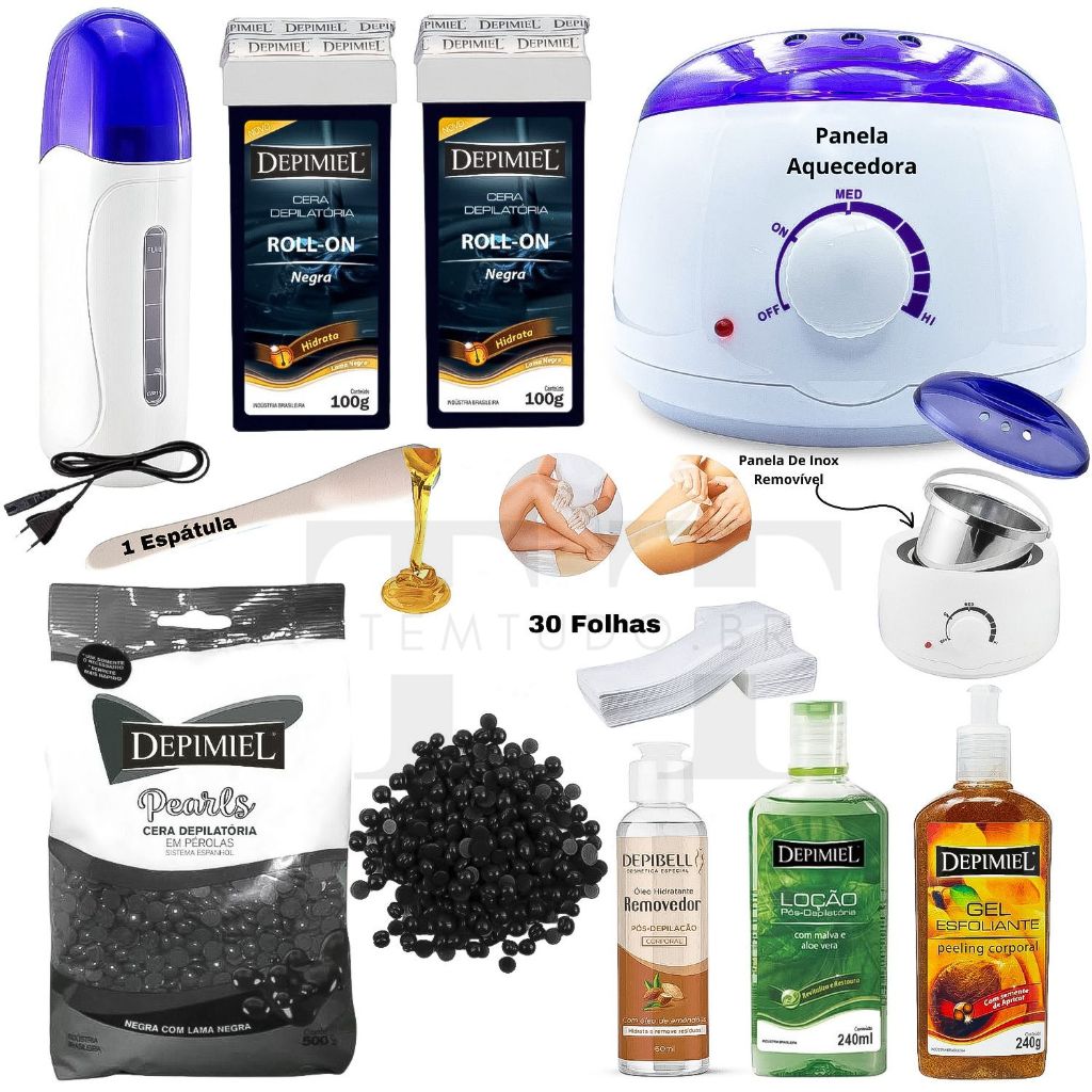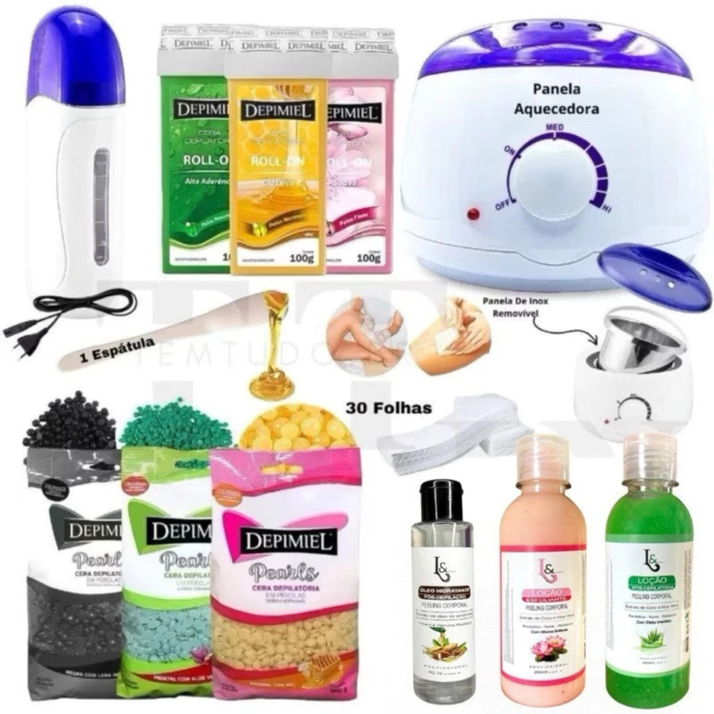 Kit Panela De Cera Aquecedor Roll On Depilação Caseira Kit Completo Nº 1