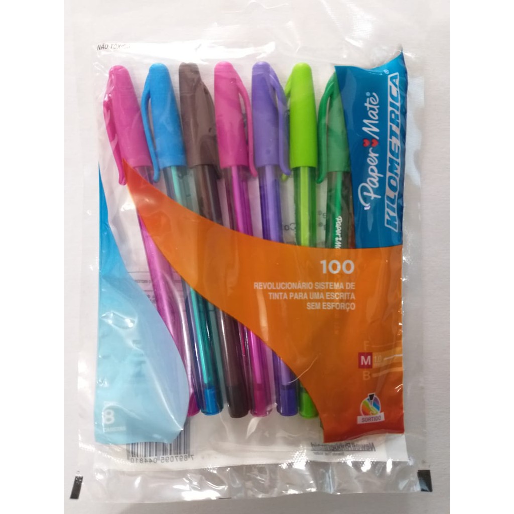 Caneta Paper Mate Kilométrica 8 Cores Ponta 1.0