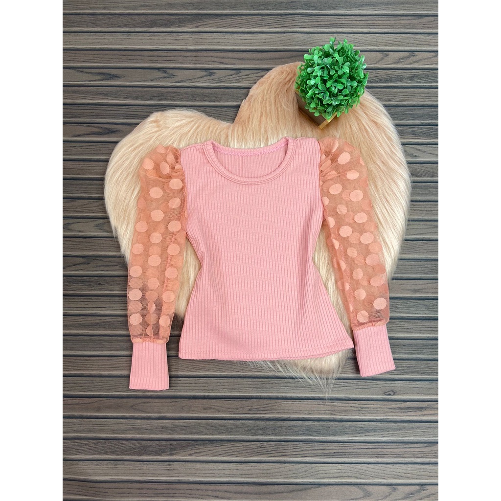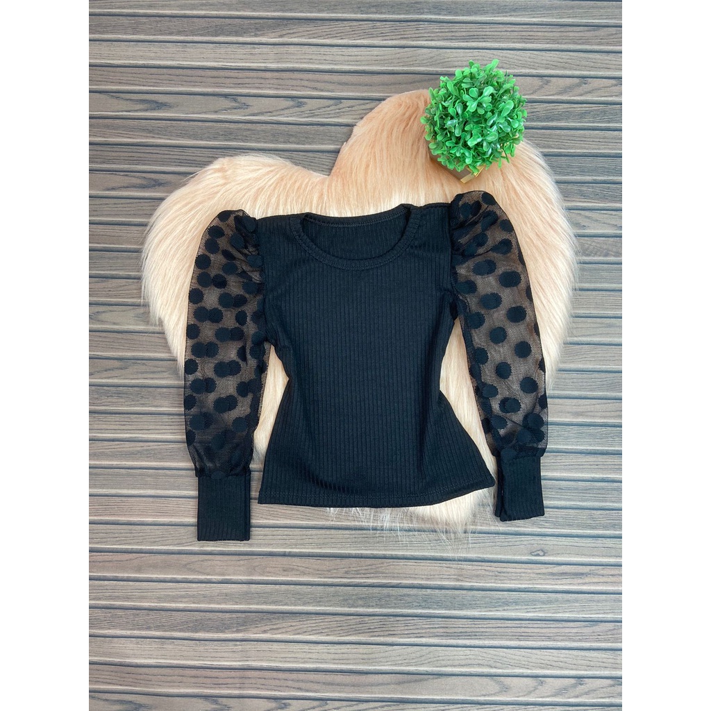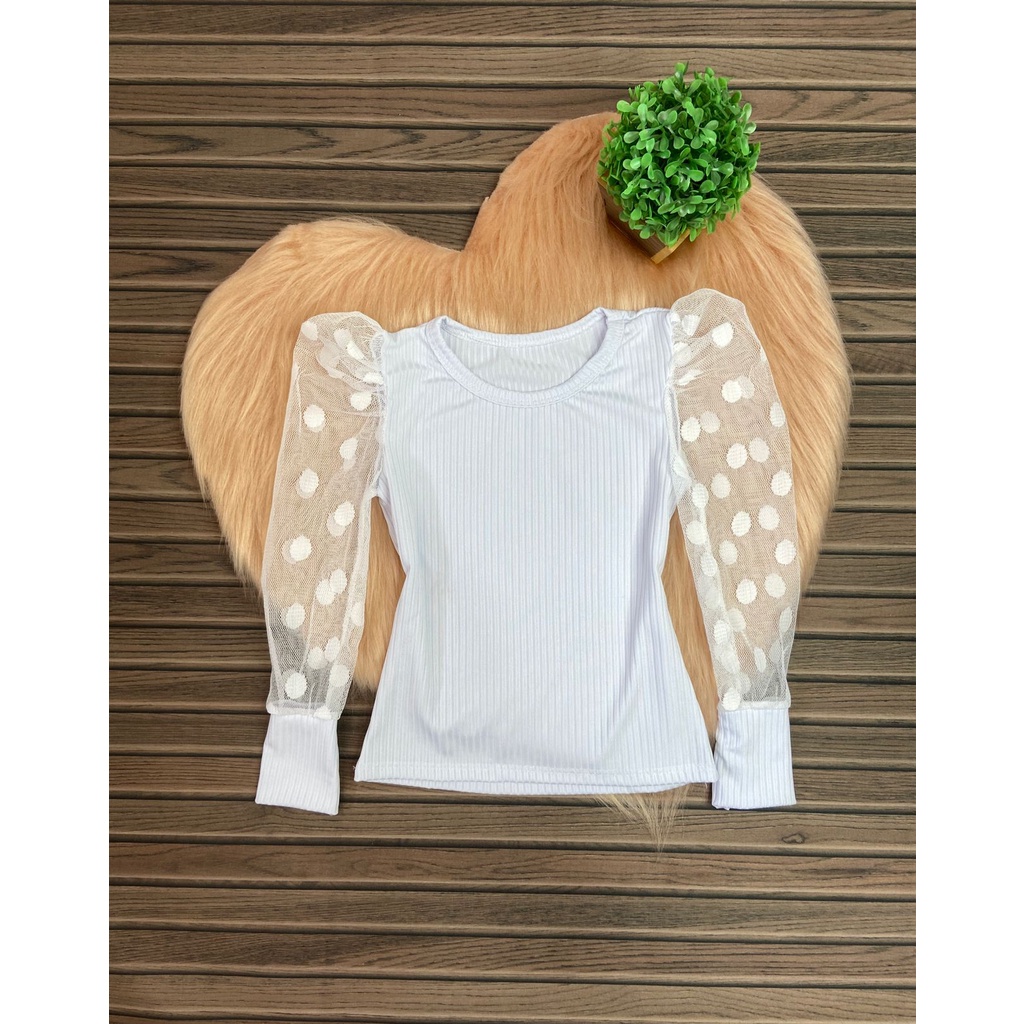 Blusa Infantil Manga Bufante Tule Princesa Transparente Luxo