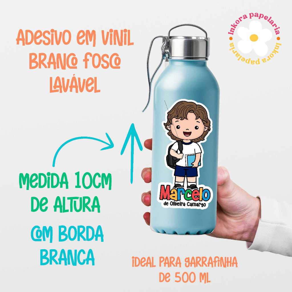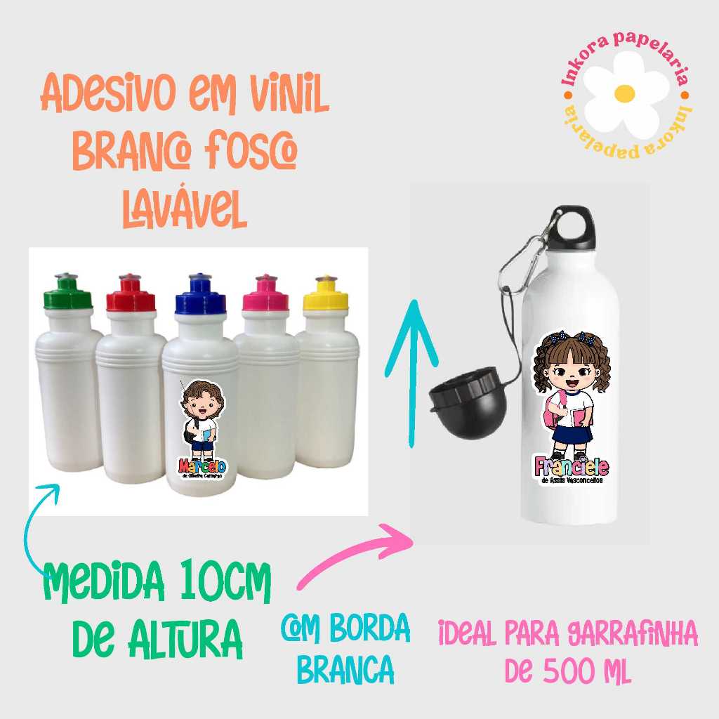 2 UNIDADES DE ADESIVO EM VINIL LÁVAVEL BRANCO FOSCO PARA GARRAFINHA QUALQUER TEMA/ SQUEEZE/ GARRAFA ESCOLAR